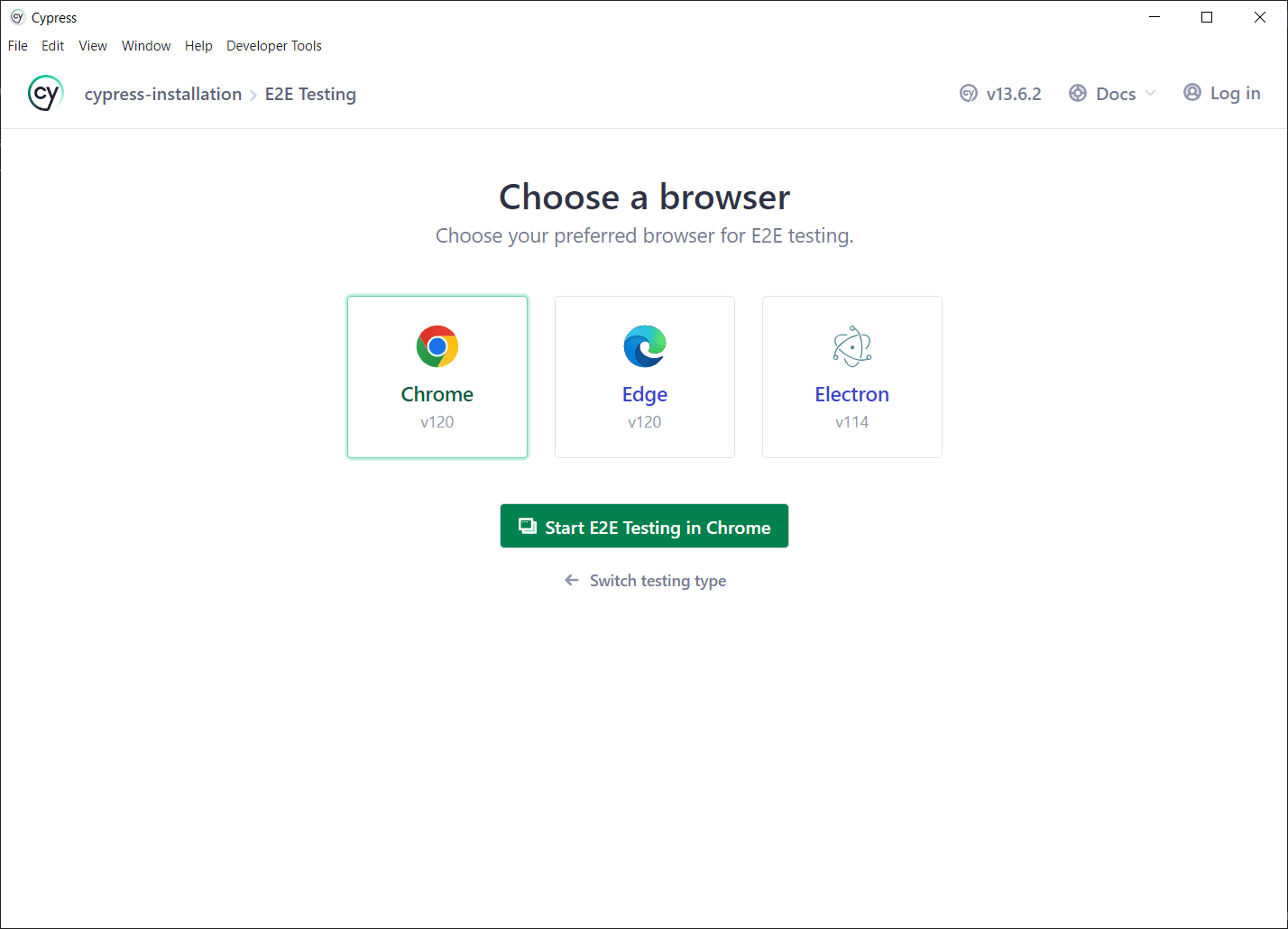 ВАЖЛИВО! Cypress буде використовувати усі доступні браузери, які встановлені на Вашій операційній системи (окрім Safari) за виключенням Electron, який поставляється разом з фреймворком у момент його інсталяції. Версії браузерів для нього будуть доступні також відповідно встановленим на машині.