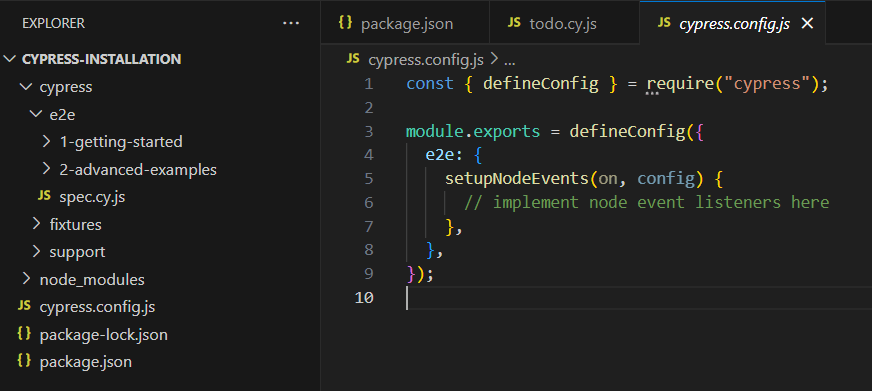 файл з базовою конфігурацією проекта можна встановити останню актуальну версію Cypress за допомогою команди: