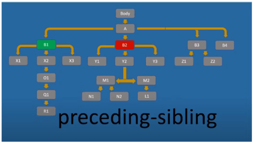 Preceding-sibling працює аналогічно Preceding, але вибирає тільки на тому ж рівні і перед зазначеним: