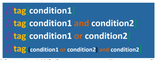 У XPath широко застосовуються логічні оператори типу AND, OR та NOT, для вказівки кількох умов пошуку та поєднання умов.