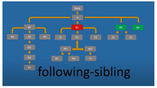 Following-sibling обирає усі елементи “братського”, тобто того ж рівня (рівня цього вузла):