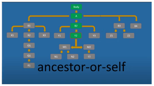 Ancestor-or-self вибирає всі предкові елементи поточного вузла, включаючи сам поточний вузол.